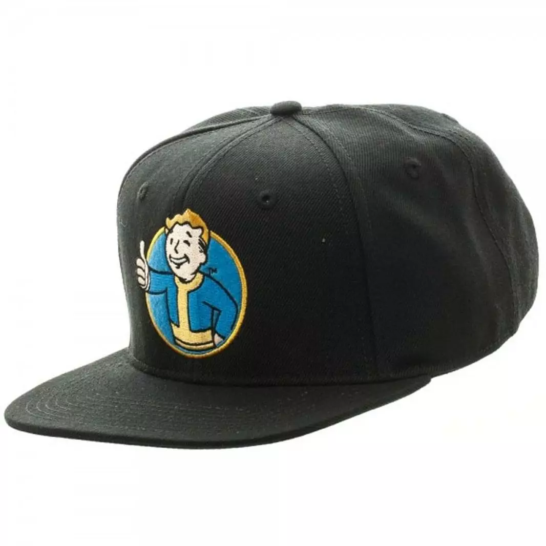 Wear your love of the hit video game Fallout with this officially licensed snapback hat! This black snapback features Vault Boy giving the thumbs up sign embroidered on the front. One size fits most.