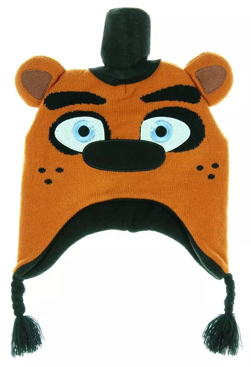 Keep your head warm while looking cool in this Five Nights at Freddy’s Laplander! This brown Peruvian style cap features a stitched Freddy Fazbear face on the front. Warm soft fleece interior. One size fits most. Officially licensed.