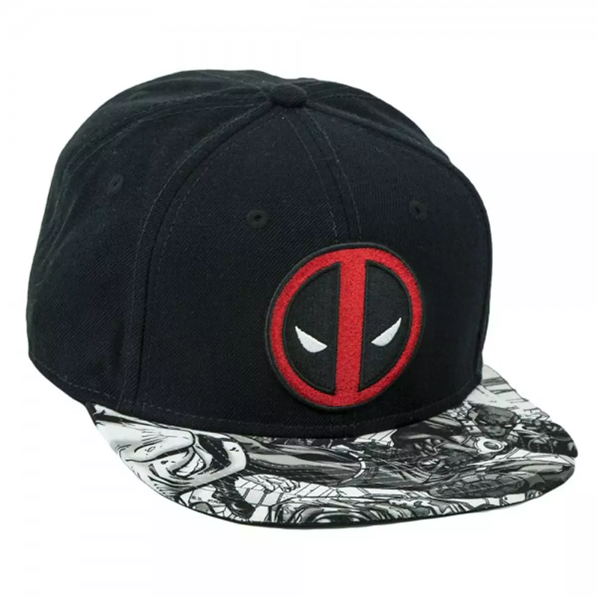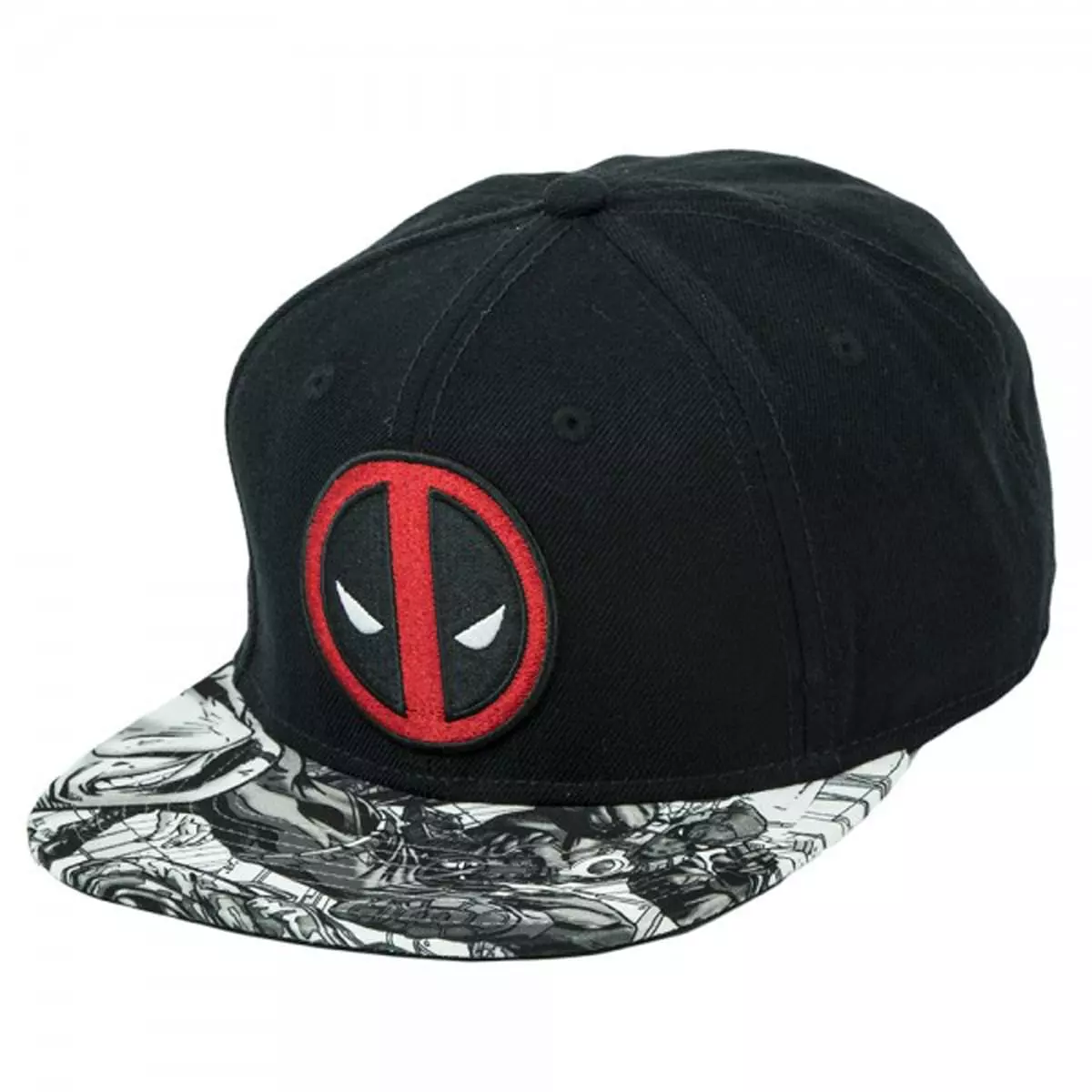 Fashion sense tingling! This Deadpool Logo Sublimated Bill Snapback Hat features the Merc with a Mouth’s face logo on the front, with a cool black and white sublimated graphic on the bill. One size fits most. Offically licensed.