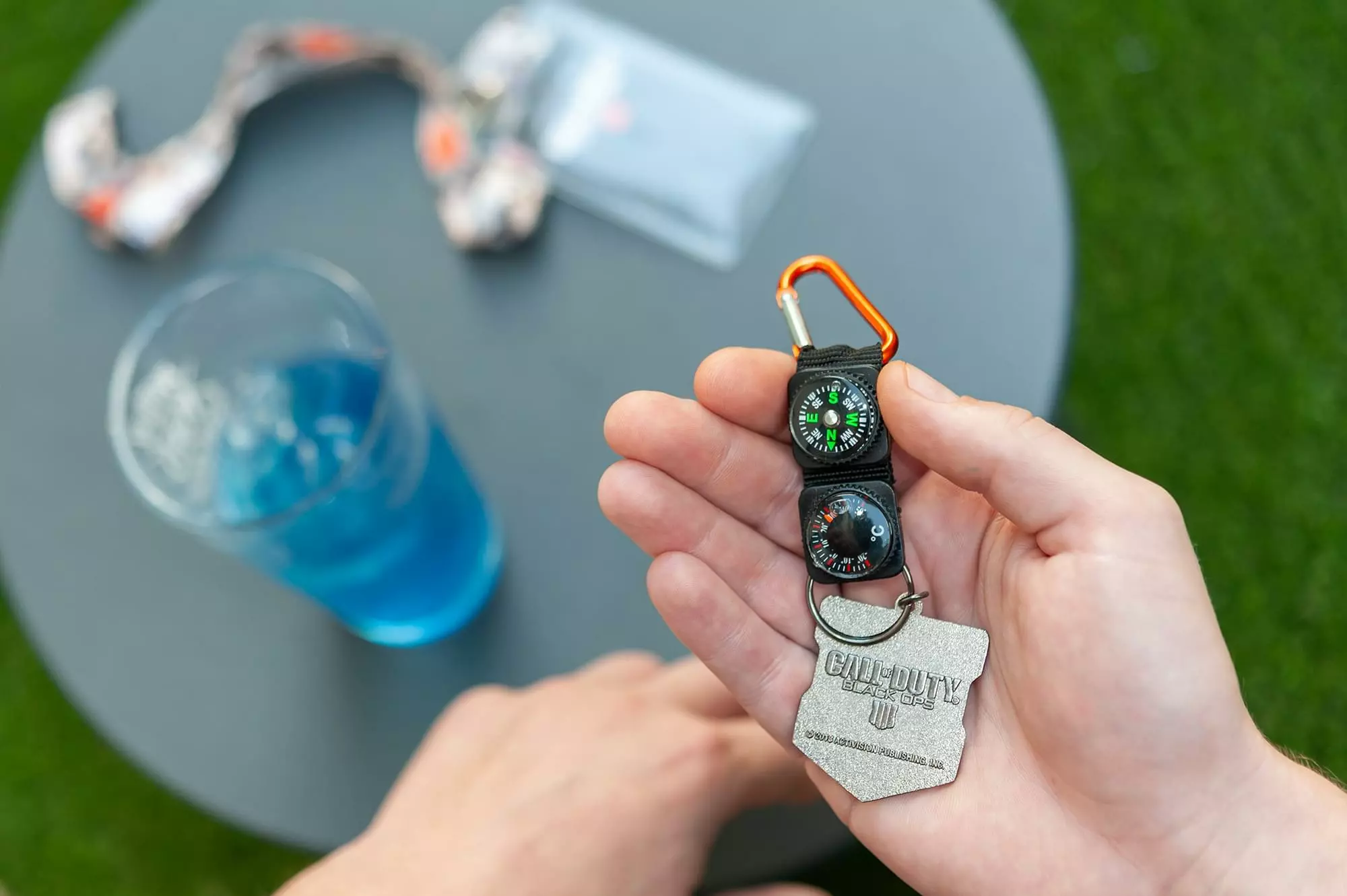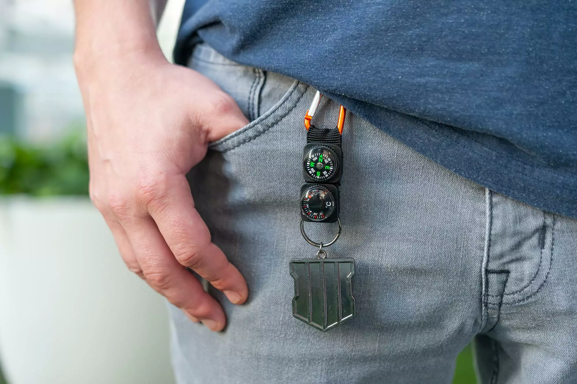 In Call of Duty: Black Ops 4, your primary objective is to survive. This Black Ops 4 branded survival keychain is here to help you accomplish just that. Keep this handy keychain attached to your survival gear or backpack at all times using the included carabiner clip. Fans of the series will enjoy the game’s logo attached at the bottom of the keychain along with a temperature gauge and compass – key survival components!