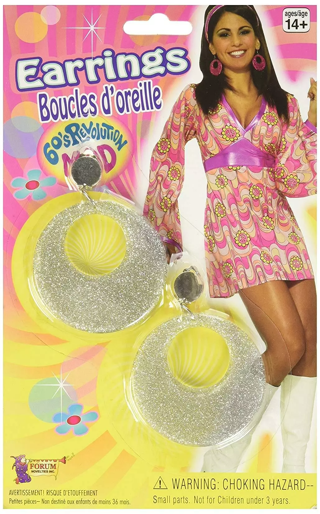 Forum Novelties 60’s 70’s Hippie Glitter Mod Costume Earrings – Silver