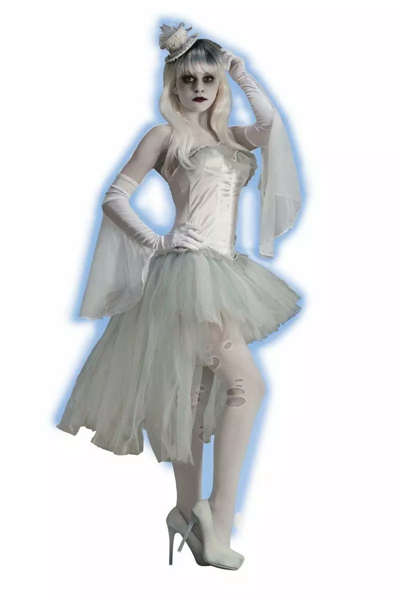 True love never dies. That being said, coming back from beyond the grave to pursue your heart’s desire isn’t easy. Give this gorgeous ghoul a hand! Looking lovely in the afterlife starts with the right accessories, as any fashion-conscious ghost will tell you. In response to the growing need for formal attire for the recently deceased, Forum Novelties created these gorgeous Ghost Bride Gloves for their eerie, elegant Ghostly Spirits Collection. Our sensuous, shroud-white Ghost Gloves are opera-length, with slender cuffs and sheer white drapes. This alluring style is reminiscent of Victorian times, with the flowing, graceful Gothic drapes adding an ethereal effect. These spell-binding Ghostly Spirits Gothic White Ghost Bride Gloves, designed by Forum Novelties, are an exquisite choice for your Snow Queen, Ice Princess, Winter Solstice, Frost Fairy, Victorian Ghost, Corpse Bride or Goth Girl Costume. “Some are born to sweet delight, some are born to endless night…”