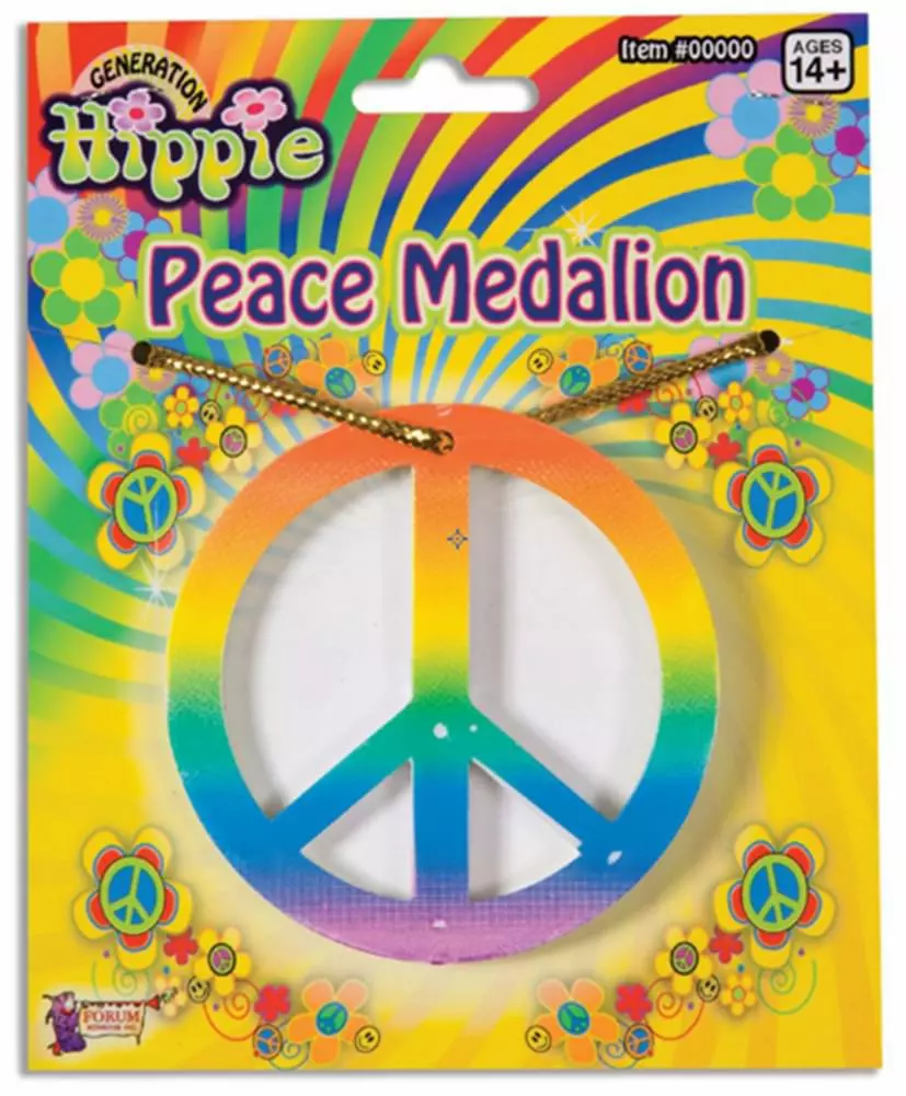 Hippie Rainbow Peace Medallion This Hippie Rainbow Peace Medallion is perfect for finishing off your Flower Child hippie costume!
