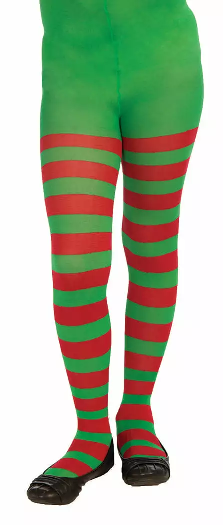 Spruce up your child’s holiday costume or outfit with these comfortable and festive, red and green striped tights!