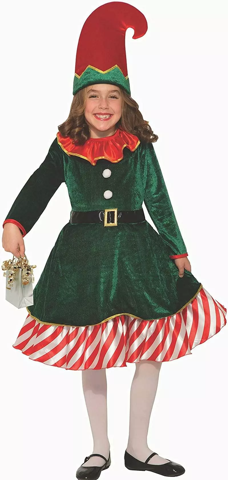 Your child will look adorable this Christmas (or Halloween!) dressed as Santa’s Lil Elf! 100% polyester costume includes a green elf hat and festive dress. Tights and gift bag NOT included. Made by Forum Novelties, a leader in costumes and novelty products for more than 30 years.