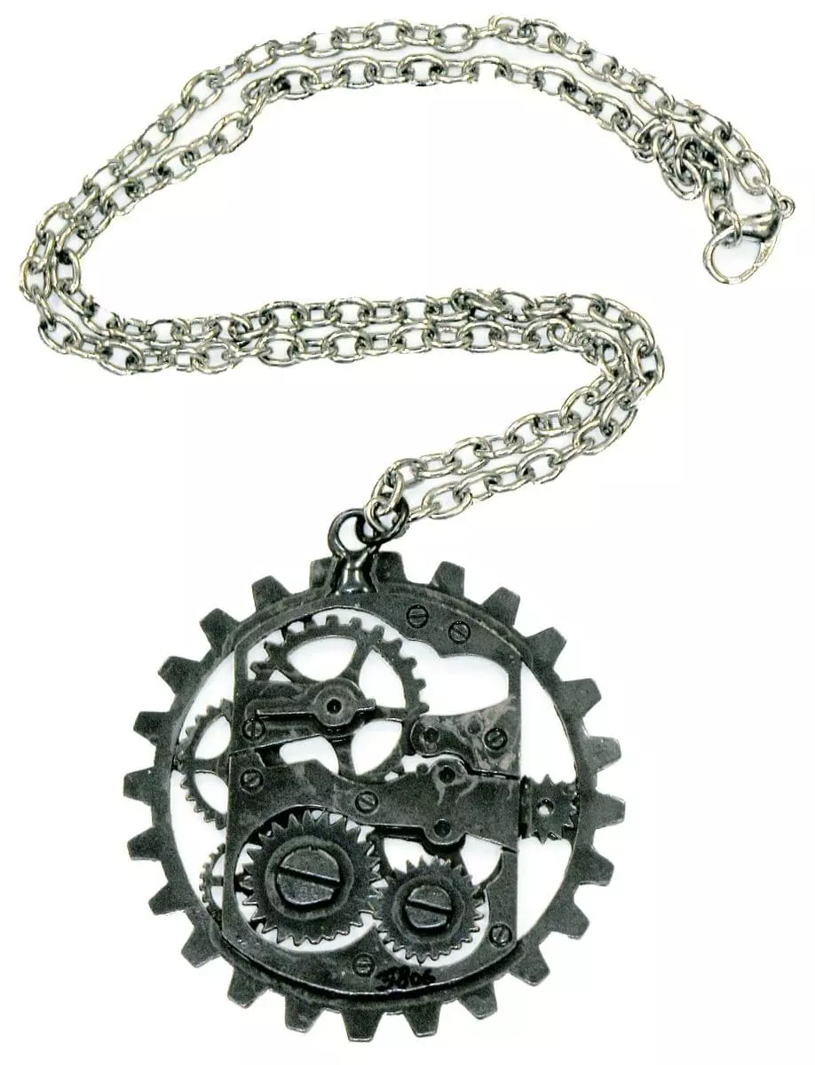 Finish your costume perfectly. Gear up for style wearing the Steampunk Dark Metal Gear Costume Pendant Necklace. Works with a variety of costume looks.