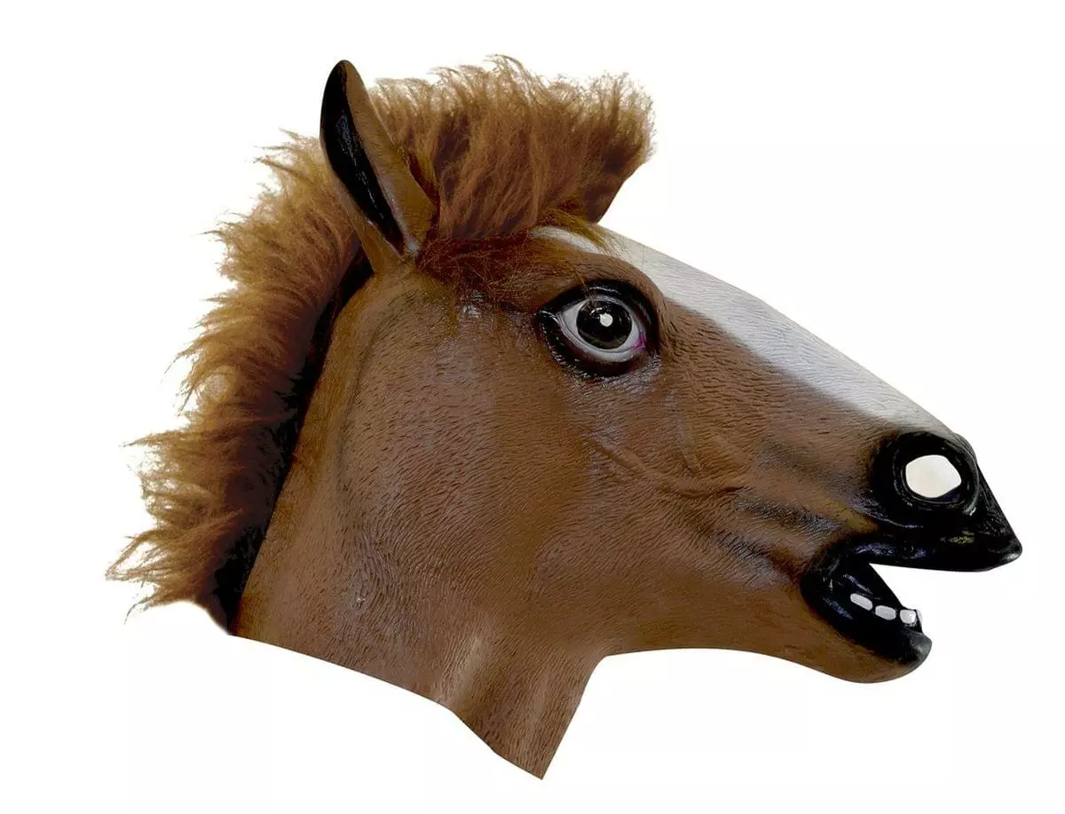 This mask is great for horsing around! Complete your costume look with this costume accessory mask. This horse head mask is constructed of latex for many years of use. Brown with white accent. Ideal for costume wear or wear just for fun! One size fits most teens and adults. Comes brand new in manufacturer packaging.Â