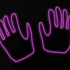 Give your hands an electrifying pink glow! Complete your Glowman Glow Costume with these glow-in-the-dark gloves. Includes one pair of black gloves with pre-sewn EL Wire. The module includes constant on, off or blink mode. Simply add 1 AAA battery to each of the gloves, then you’re good to glow.