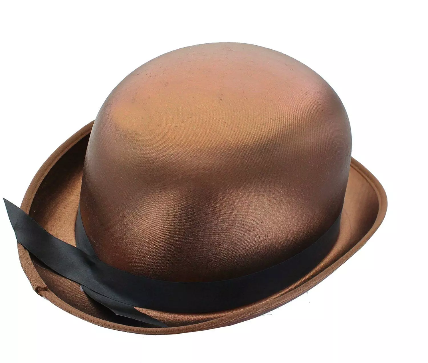 Add some style to any ensemble with this Brown Satin Costume Derby Hat. Look dapper. Add sophistication and mystery with this topper that’s the finishing touch.