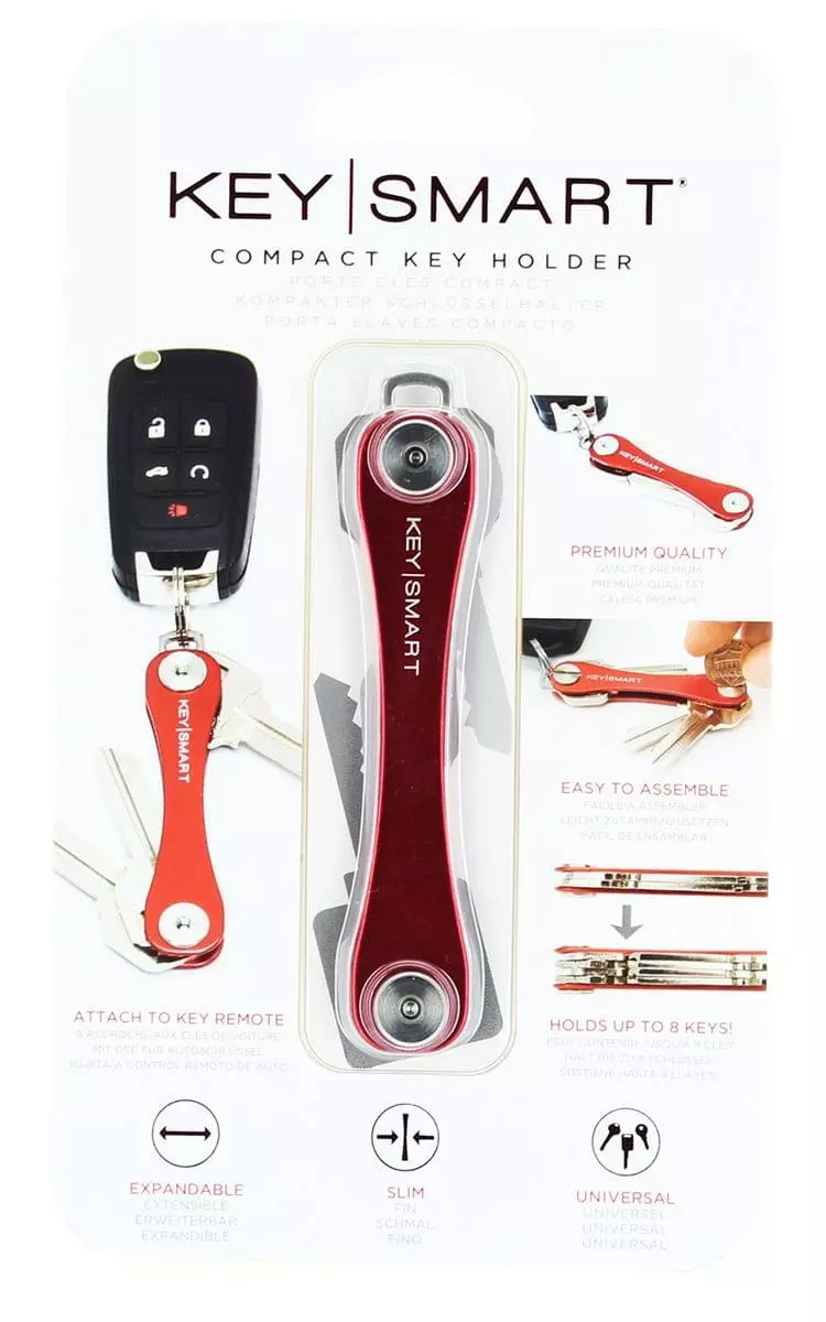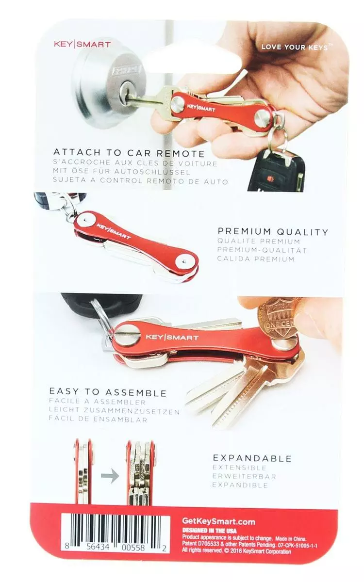 The KeySmart’s unique “S” shaped design allows you to hold between 2- 100 keys (with expansion packs, sold separately). Its compact size is smaller than a pack of gum (3 5/8″ overall). It is also universal, will fit almost any key found at your local hardware store! Includes loop piece to attach car keys. Made in the USA from aircraft aluminum, stainless steel hardware, and a laser engraved logo. Base model holds up to 4 keys, expansion packs for 5+ keys are available (sold separately).