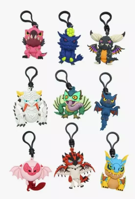 Show off your Monster Hunter fandom with these collectible random bag clips! Each bag clip is sculpted in 3-D foam, and comes with a clip to hook onto your favorite bag or zippered jacket! There are 11 possible designs to collect with 2 chases: Anjanath, Barioth, Brachydios, Pukei-Pukei, Nargacuga, Tigrex, Nergigante, Paolumu, Rathalos, Rathian (chase), and Zinogre (chase). Which one will you get? Collect them all! Officially licensed. Includes one random bag clip.