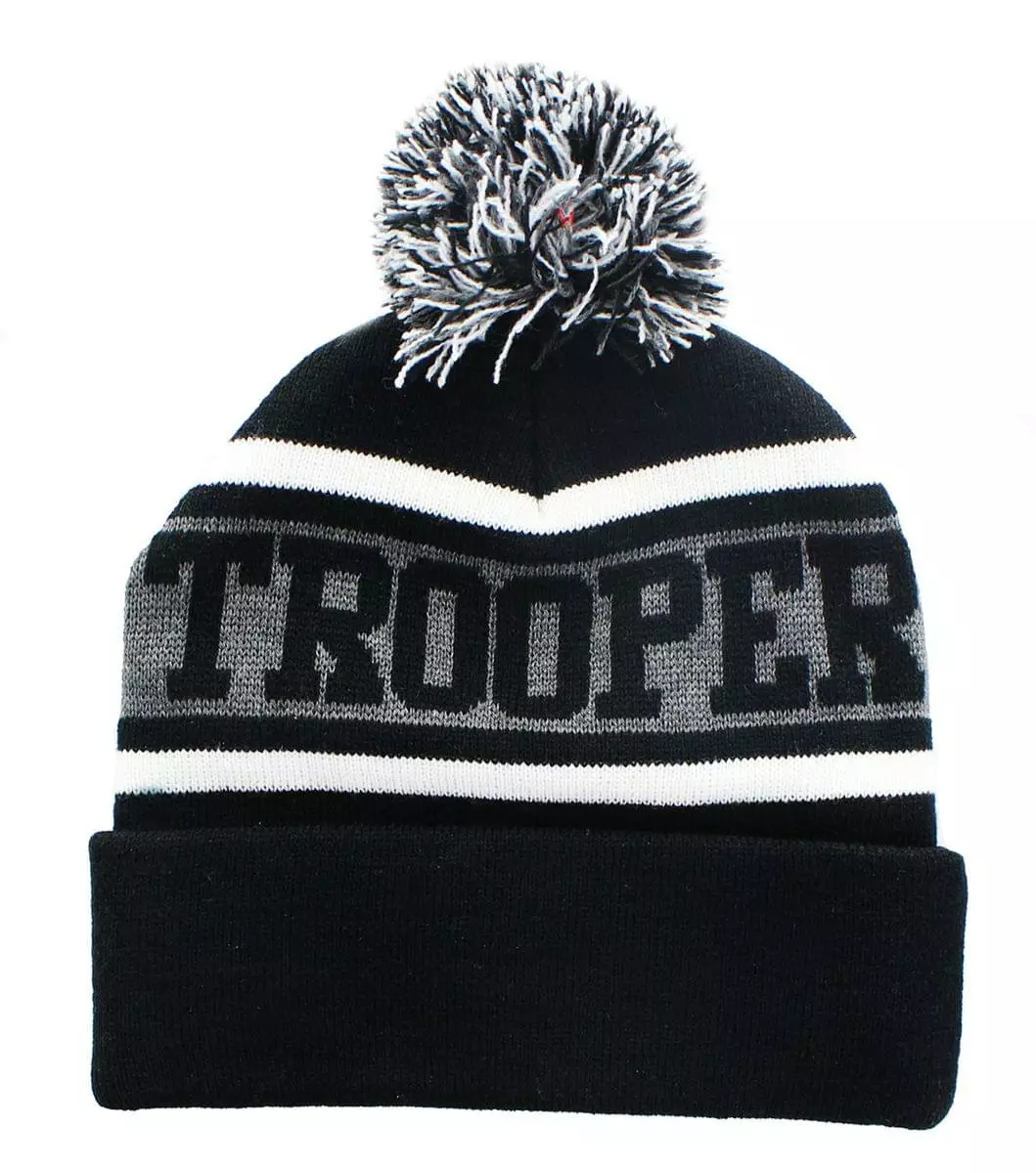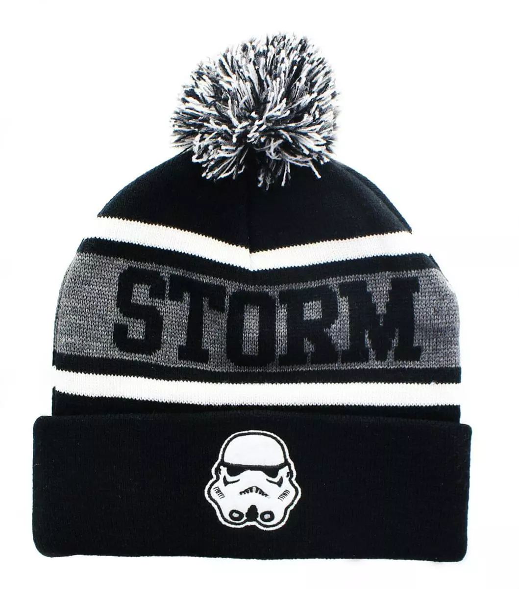 Keep your head warm while looking cool with this stylish Star Wars beanie! This black and gray beanie is one size fits most and features the text “Storm” across the head and an embroidered Stormtrooper head on the cuff. Topped with a black and grey pom. A Nerd Block exclusive. Officially licensed.