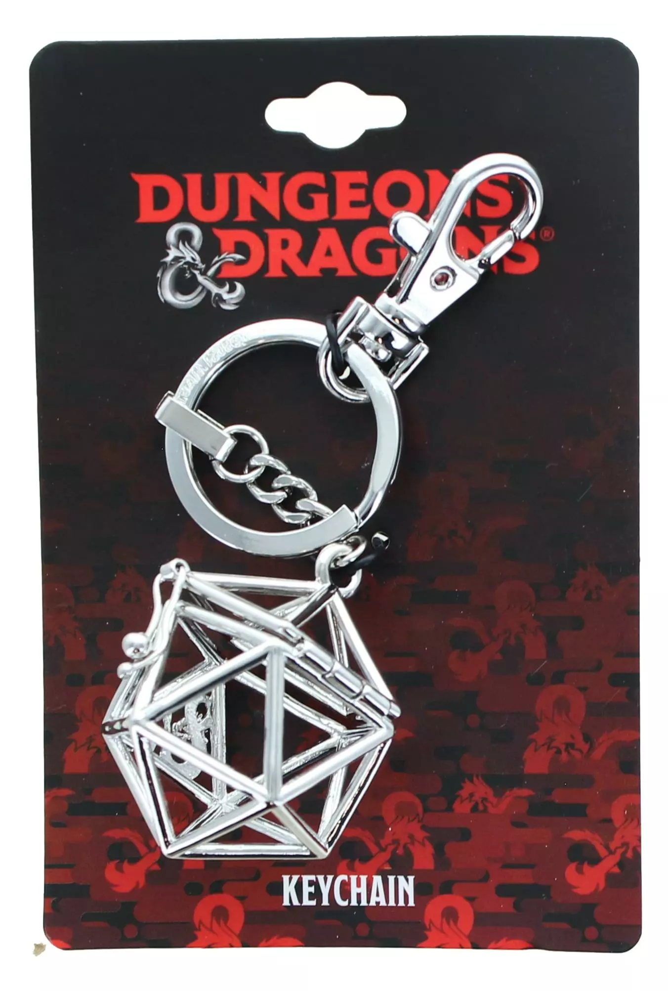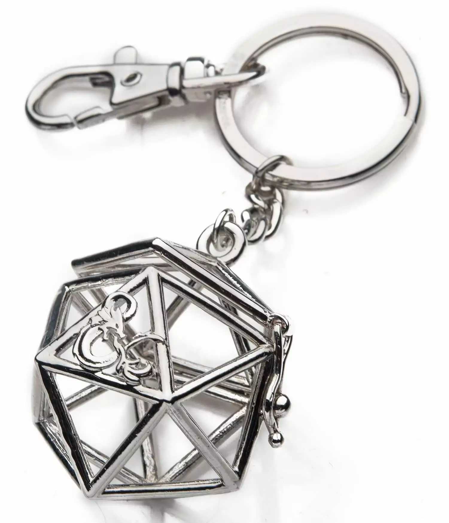 Show off your Dungeons & Dragons fandom with this fun and functional D&D Magnetic Cage Dice Holder Keychain! Made of Stainless Steel, the cage features a magnetic clasp for storing one of your favorite 20-sided die (dice not included). A handy lobster claw clasp allows you to safely carry your lucky die with you to the next campaign. Officially licensed.