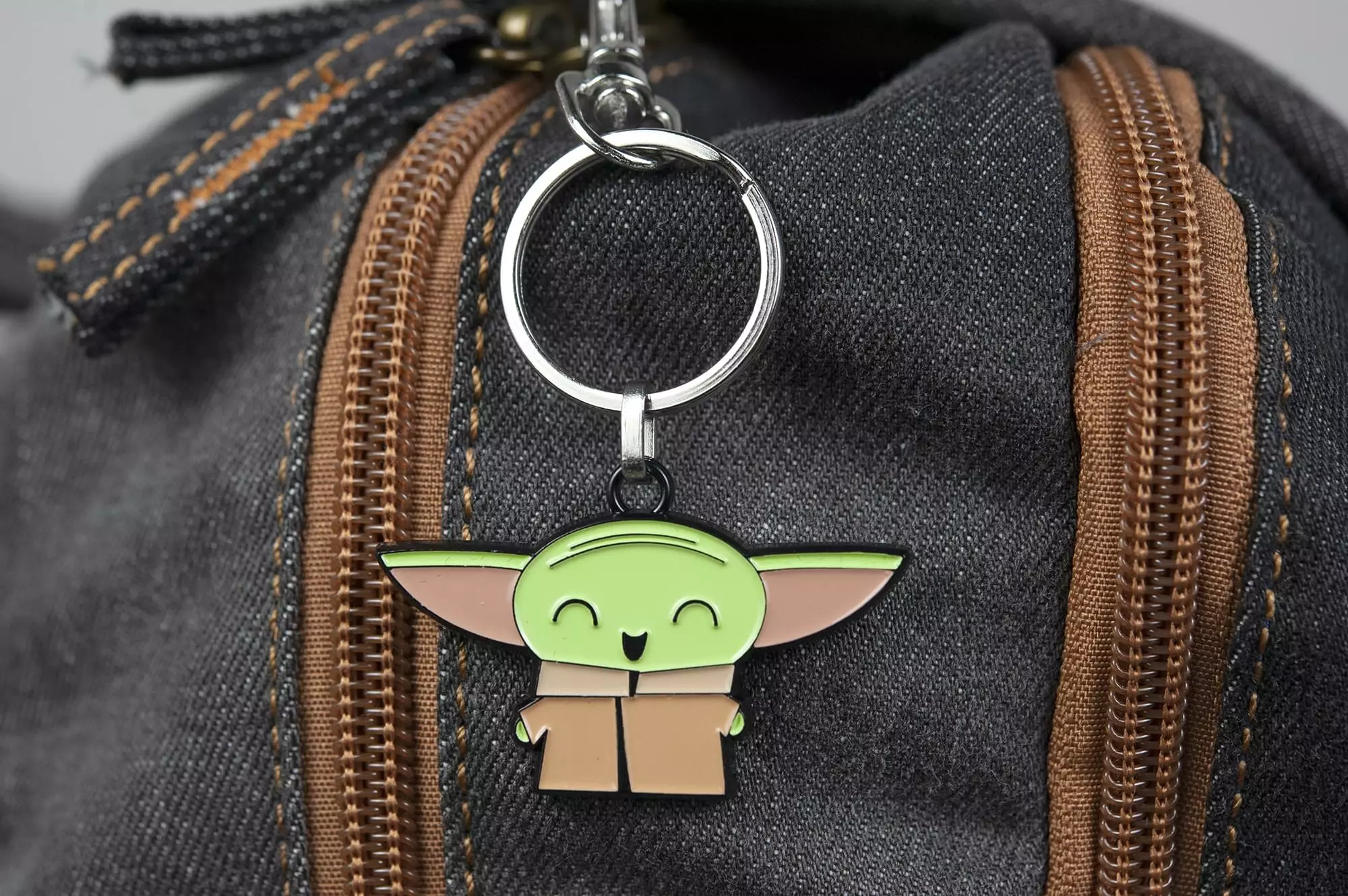 Featuring an adorable design, this enamel pendant keychain shows The Child smiling happily with his eyes closed and tiny wrinkles on his forehead. Made of durable base metal, this Star Wars keychain is crafted with a highly detailed colored enamel inlay and features a lobster claw clasp. This fun collectible gift is perfect for fans of all ages who love Star Wars and Baby Yoda.