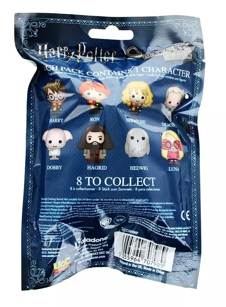 Collect your love of the Wizarding World of Harry Potter! These adorable chibi-style figure keychains depict all your favorite Harry Potter characters. There are eight Harry Potter Backpack Hangers to collect: Harry, Ron, Hermione, Draco, Dobby, Hagrid, Hedwig, and Luna. Which one will you get?